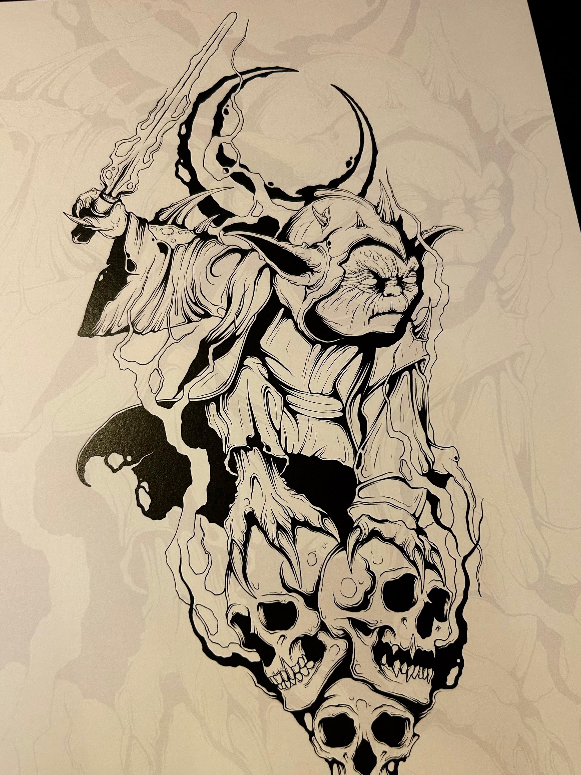 Print Star Wars représentant le célèbre Yoda qui serait passé du coté obscure.