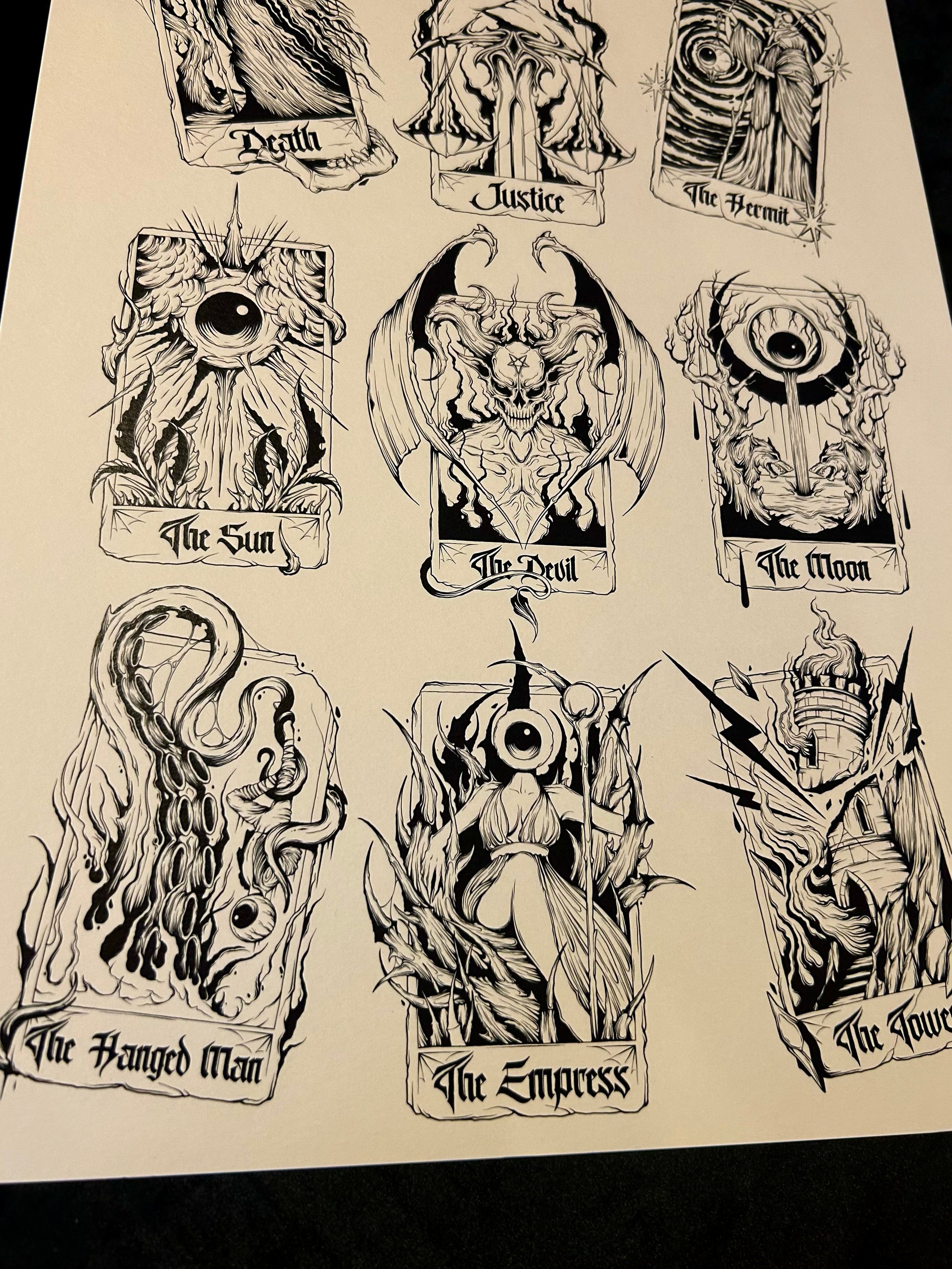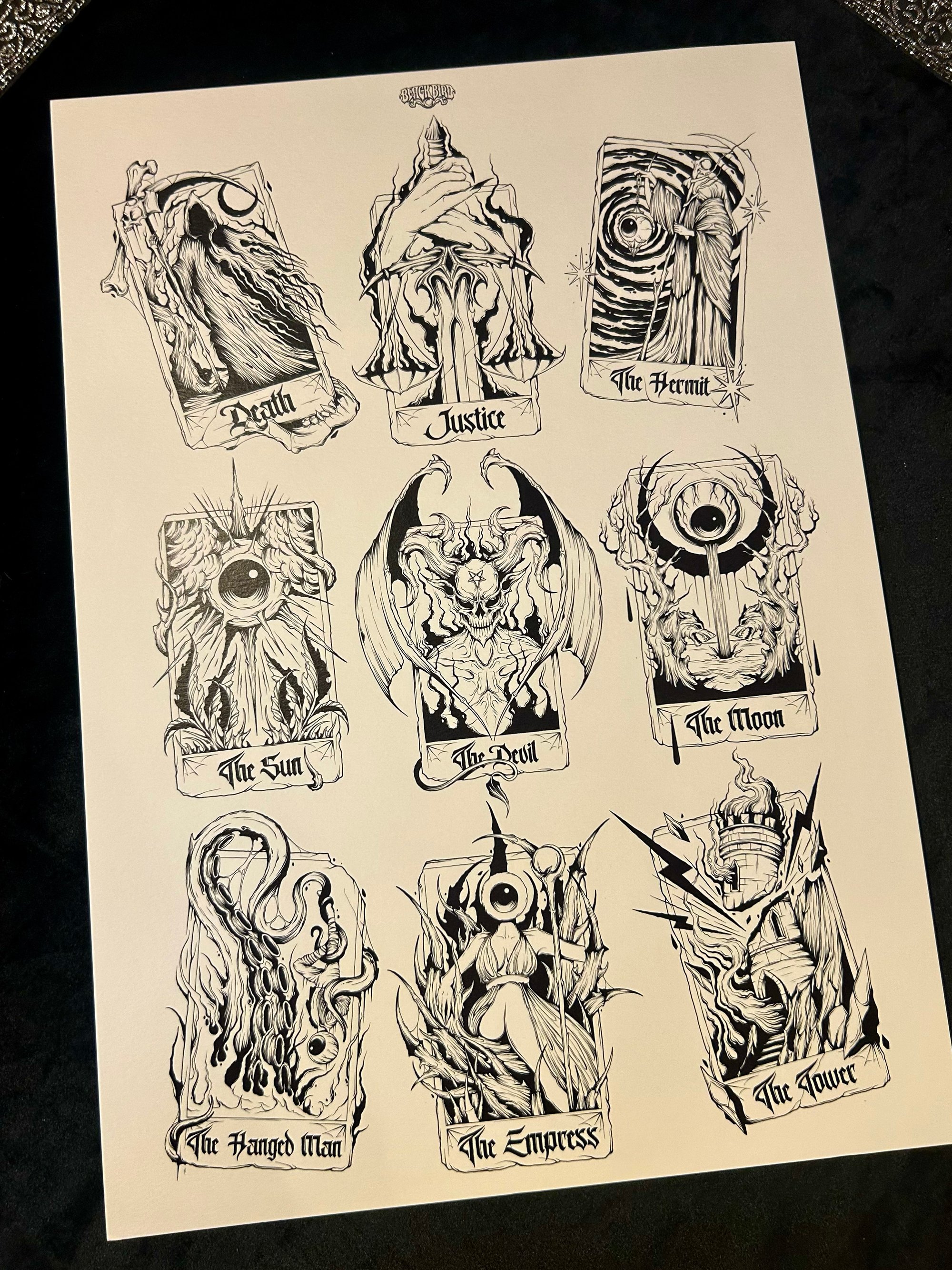 Print réunissant tout mes flash de ma série "tarot" sur un seul et même print.